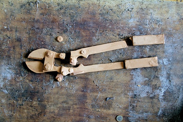 Brad Downey: Bolt Cutters (2013), unglazed terracotta, 56 x 10 x 2 cm